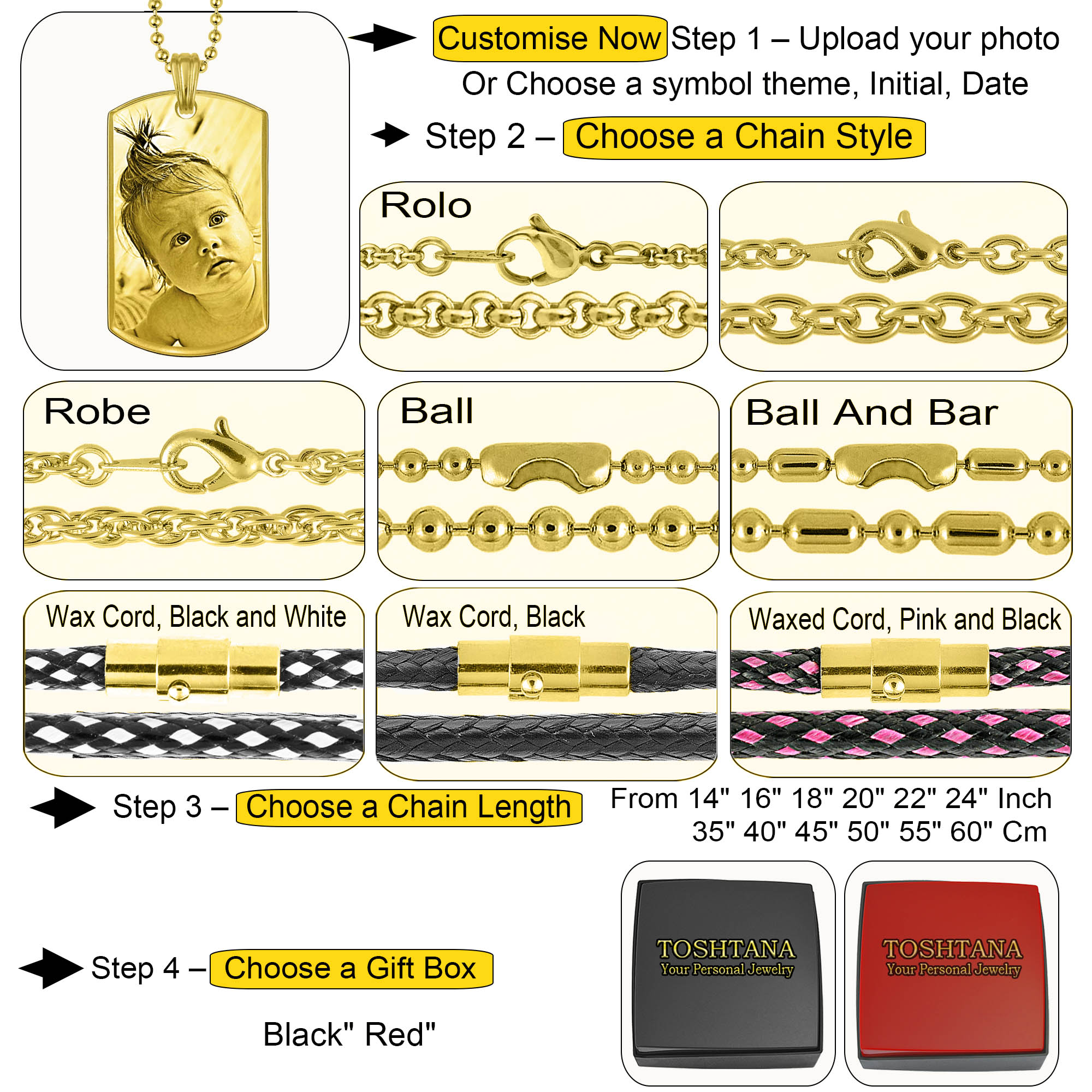 | Select Chain Length | 14in 35cm, 16in 40cm, 18in 45cm, 20in 50cm, 22in 55cm, 24in 60cm |