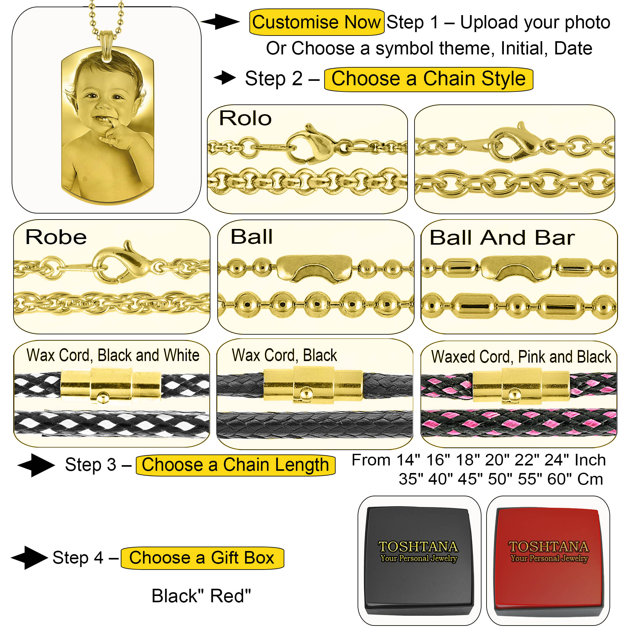 | Select Chain Length | 14in 35cm, 16in 40cm, 18in 45cm, 20in 50cm, 22in 55cm, 24in 60cm |