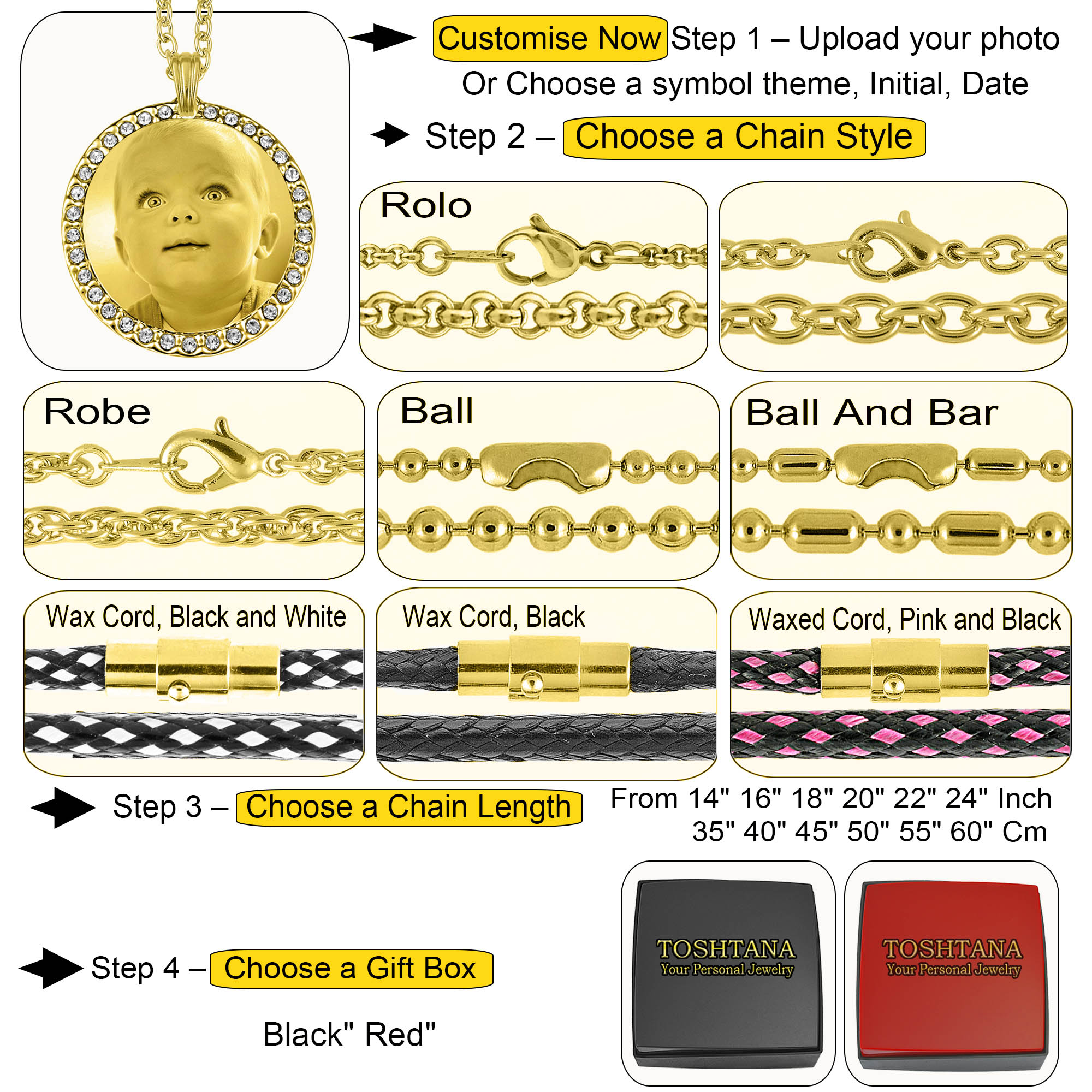 | Select Chain Length | 14in 35cm, 16in 40cm, 18in 45cm, 20in 50cm, 22in 55cm, 24in 60cm |