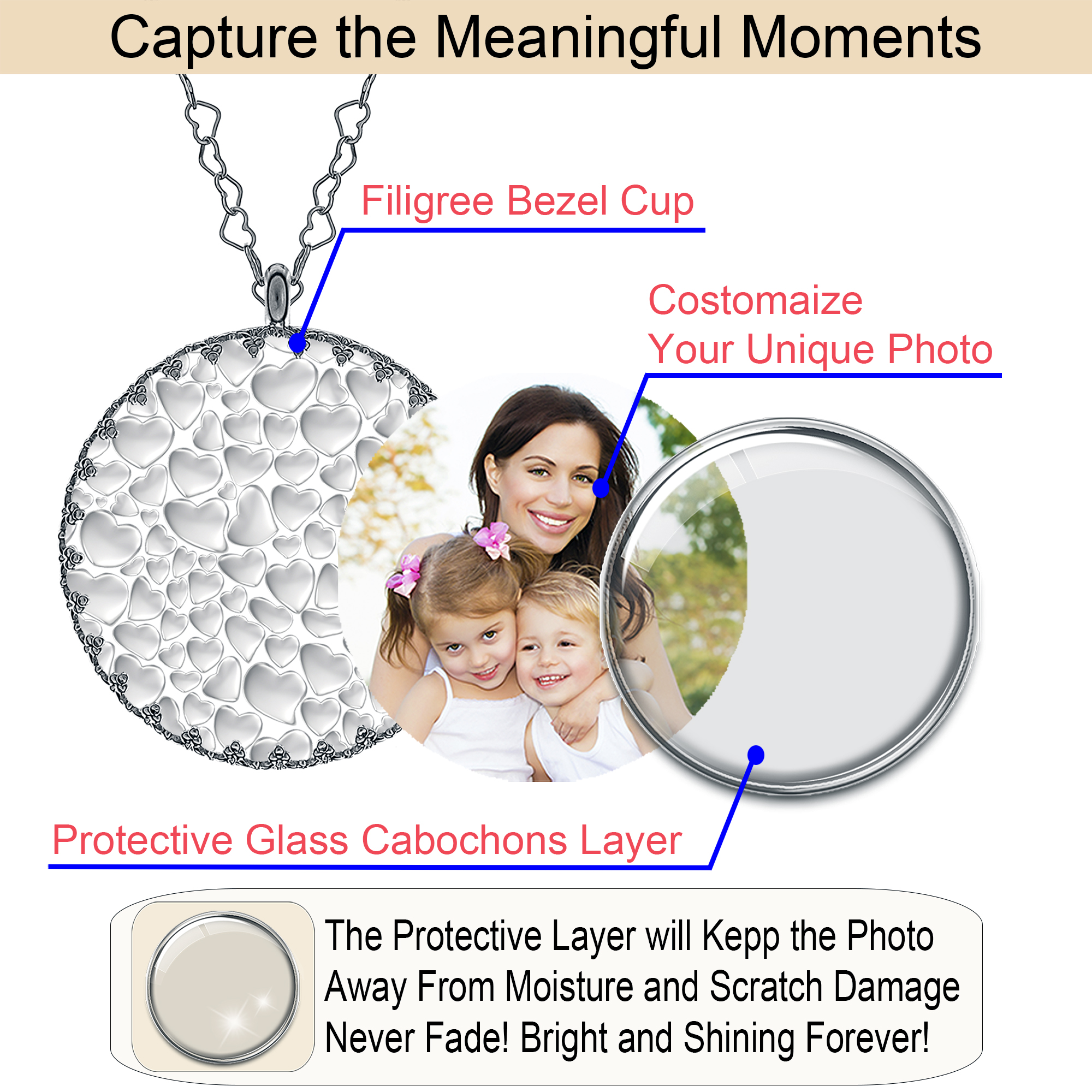 - ⛓️ Versatile Design: Personalised photo necklaces are not just an accessory but a statement piece. Wear it casually or formally; this personalised photo necklace seamlessly complements any outfit.