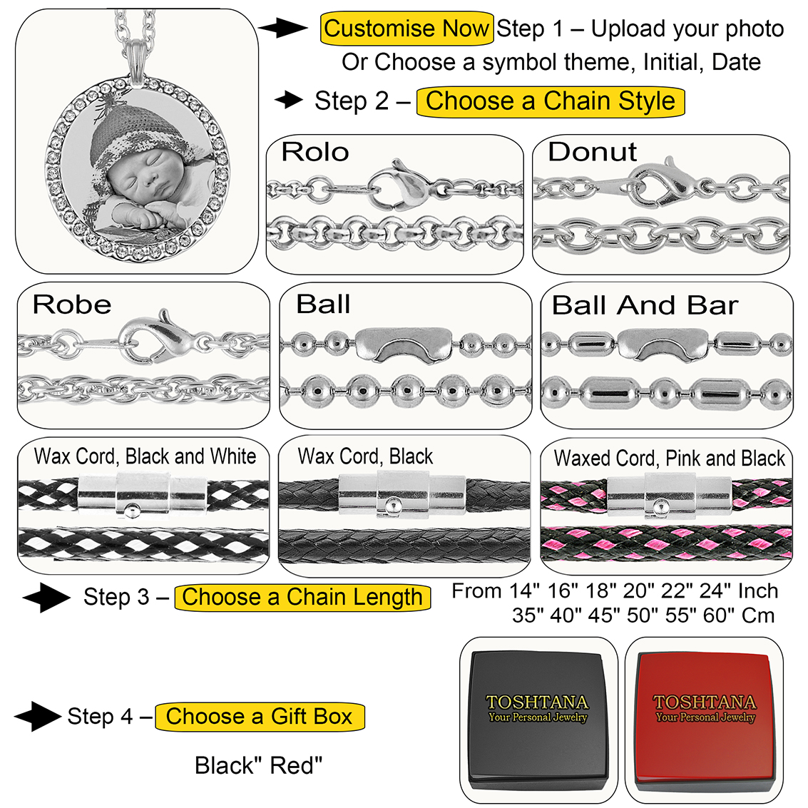 | Select Chain Length | 14in 35cm, 16in 40cm, 18in 45cm, 20in 50cm, 22in 55cm, 24in 60cm |