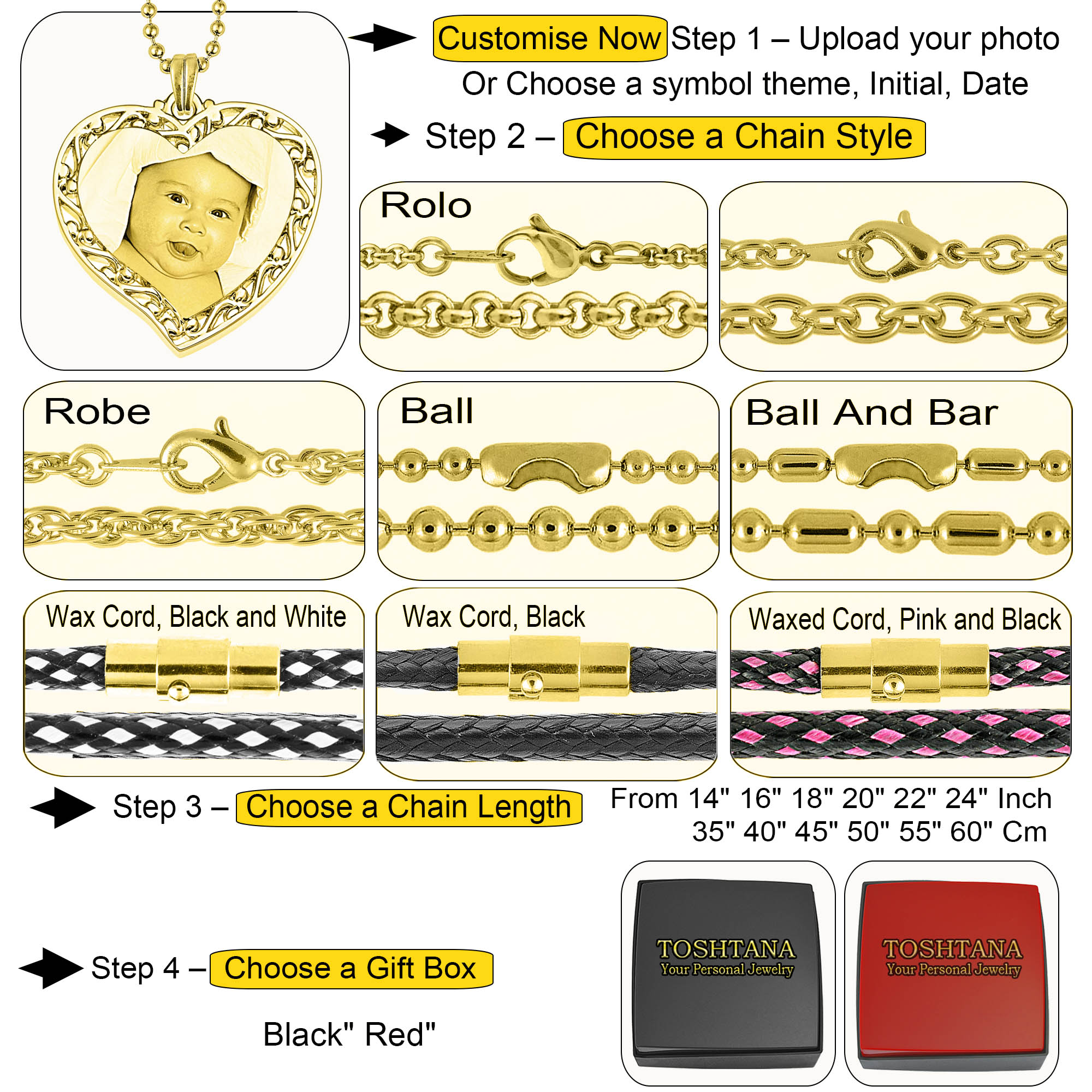 | Select Chain Length | 14in 35cm, 16in 40cm, 18in 45cm, 20in 50cm, 22in 55cm, 24in 60cm |
