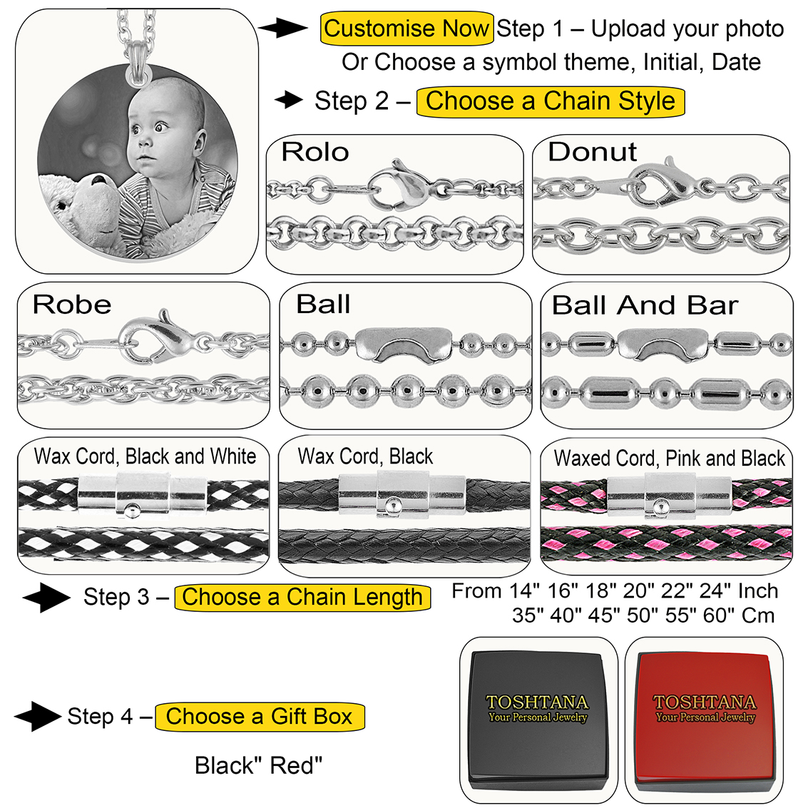 | Select Chain Length | 14in 35cm, 16in 40cm, 18in 45cm, 20in 50cm, 22in 55cm, 24in 60cm |