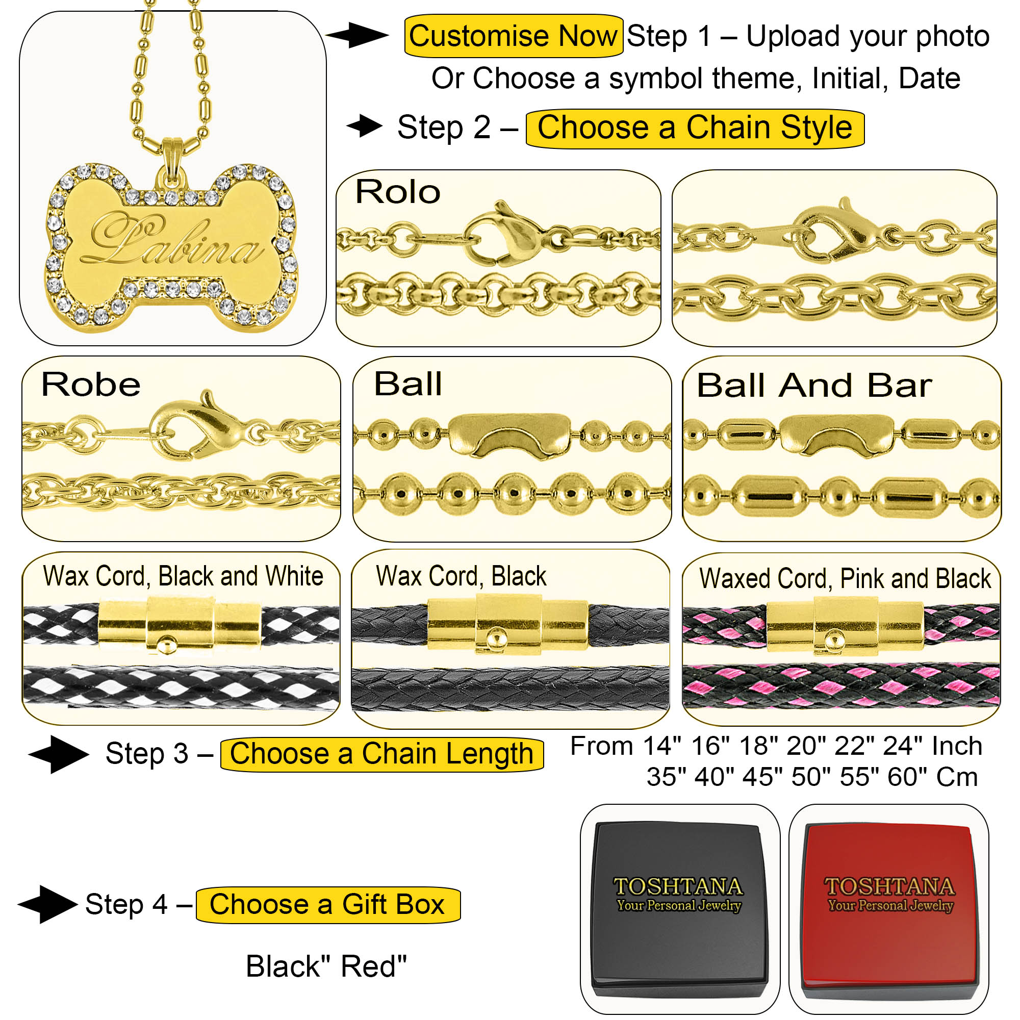 | Select Chain Length | 14in 35cm, 16in 40cm, 18in 45cm, 20in 50cm, 22in 55cm, 24in 60cm |
