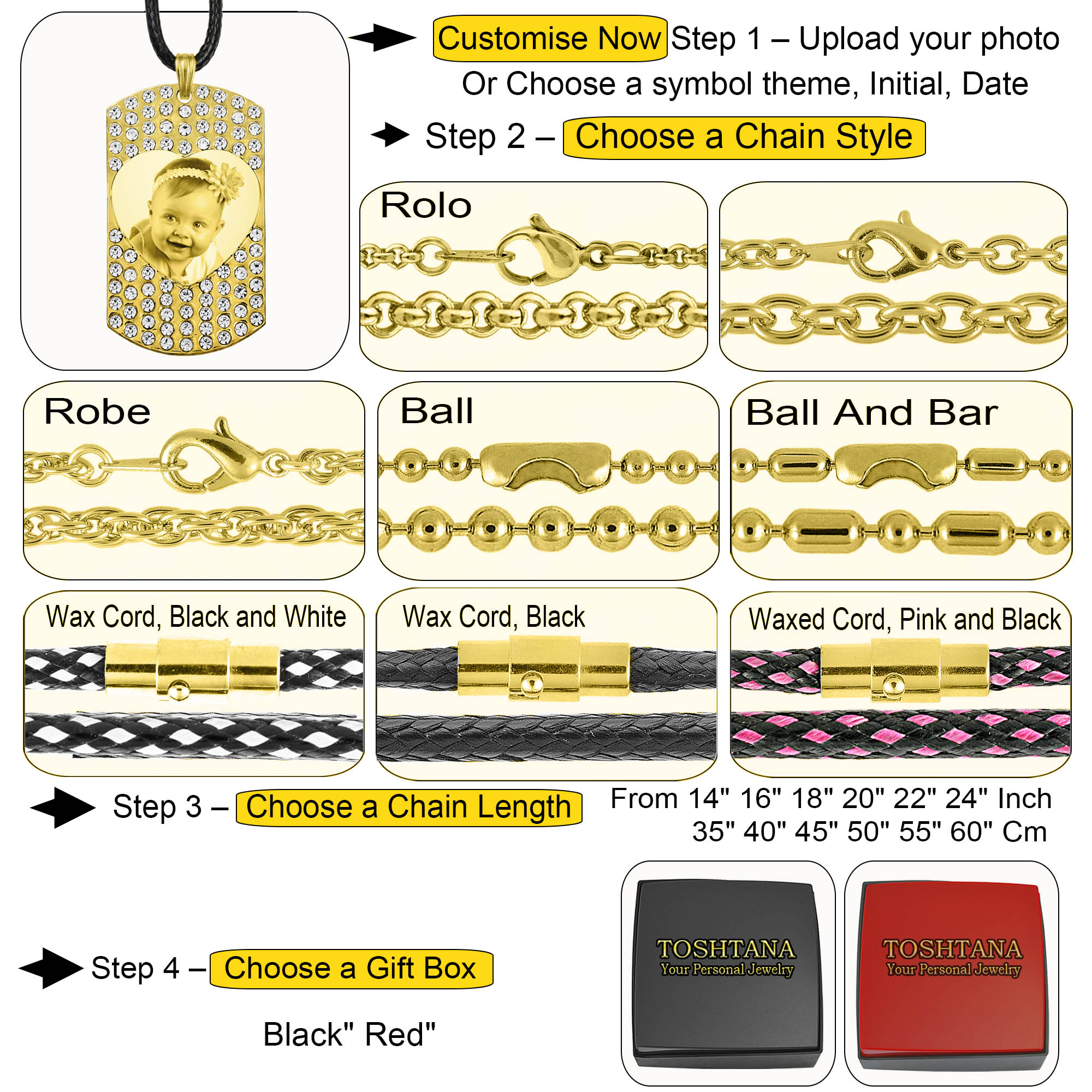 | Select Chain Length | 14in 35cm, 16in 40cm, 18in 45cm, 20in 50cm, 22in 55cm, 24in 60cm |