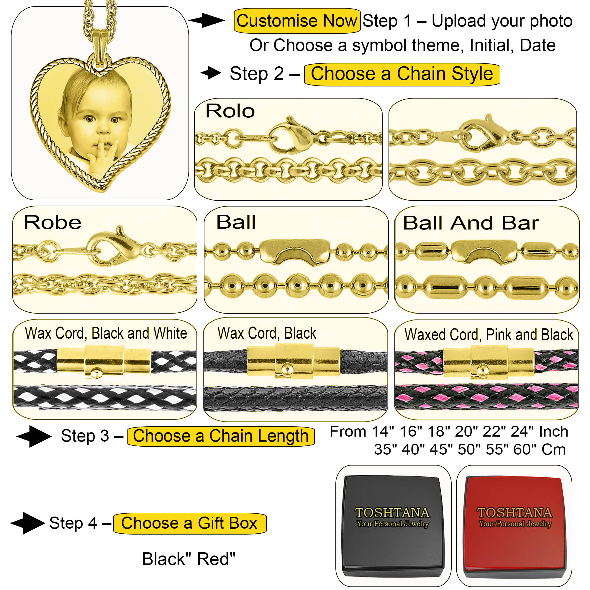 | Select Chain Length | 14in 35cm, 16in 40cm, 18in 45cm, 20in 50cm, 22in 55cm, 24in 60cm |