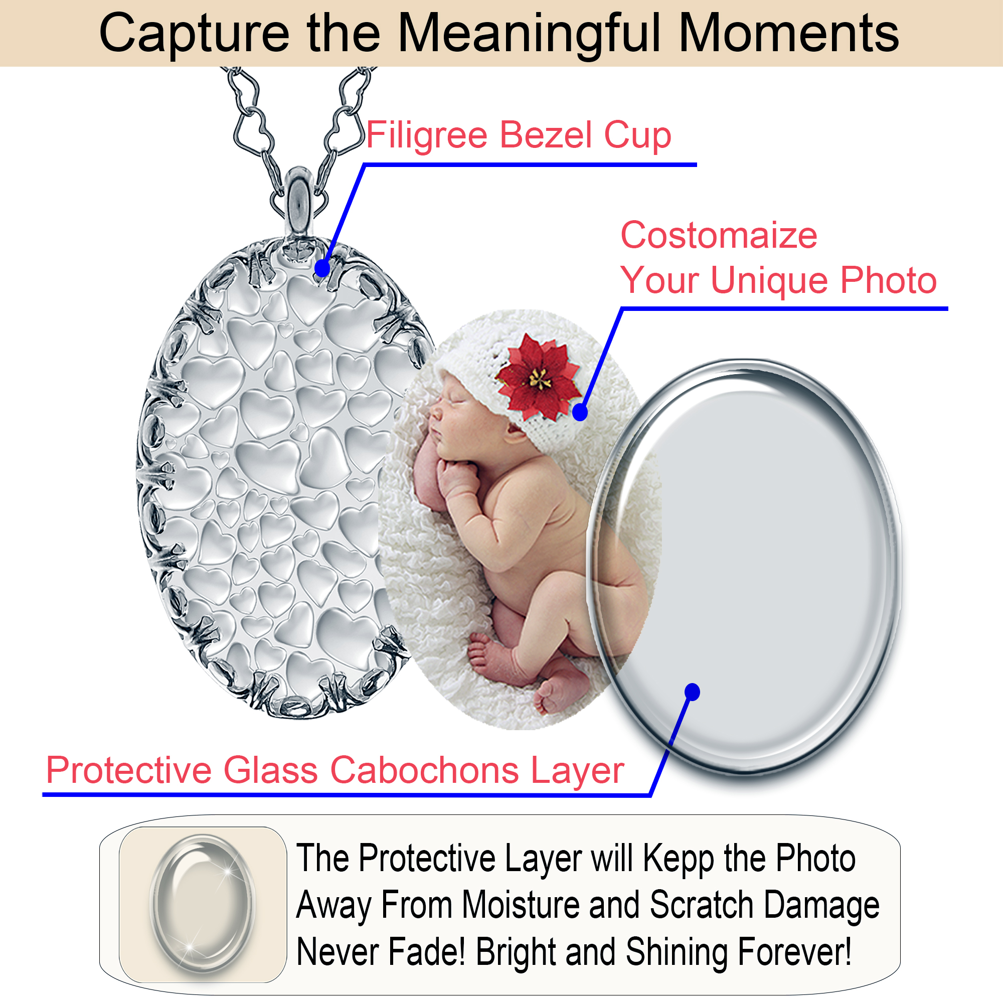 - ⛓️ Versatile Design: Personalised photo necklaces are not just an accessory but a statement piece. Wear it casually or formally; this personalised photo necklace seamlessly complements any outfit.