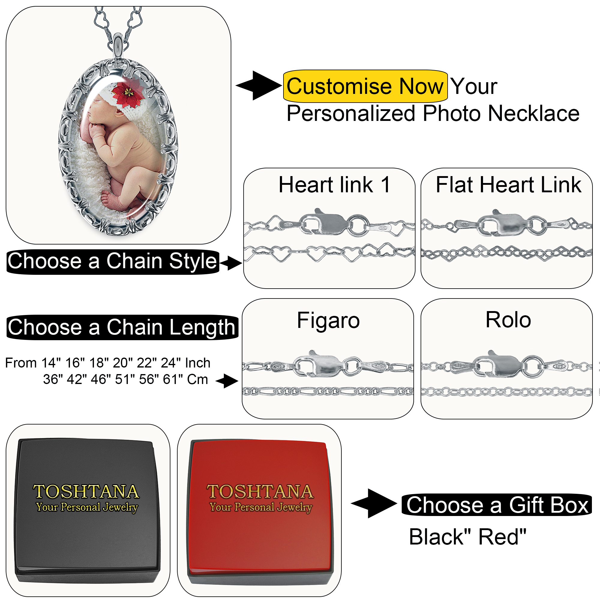 - 👉👉1. Click the ‘Customise Now’ button to begin. 2. Upload your cherished photo for the FRONT SIDE of the pendant. 3. Select your preferred chain style from our options. 4. Choose the perfect chain length that suits your style. 5. Pick your favourite gift box too.