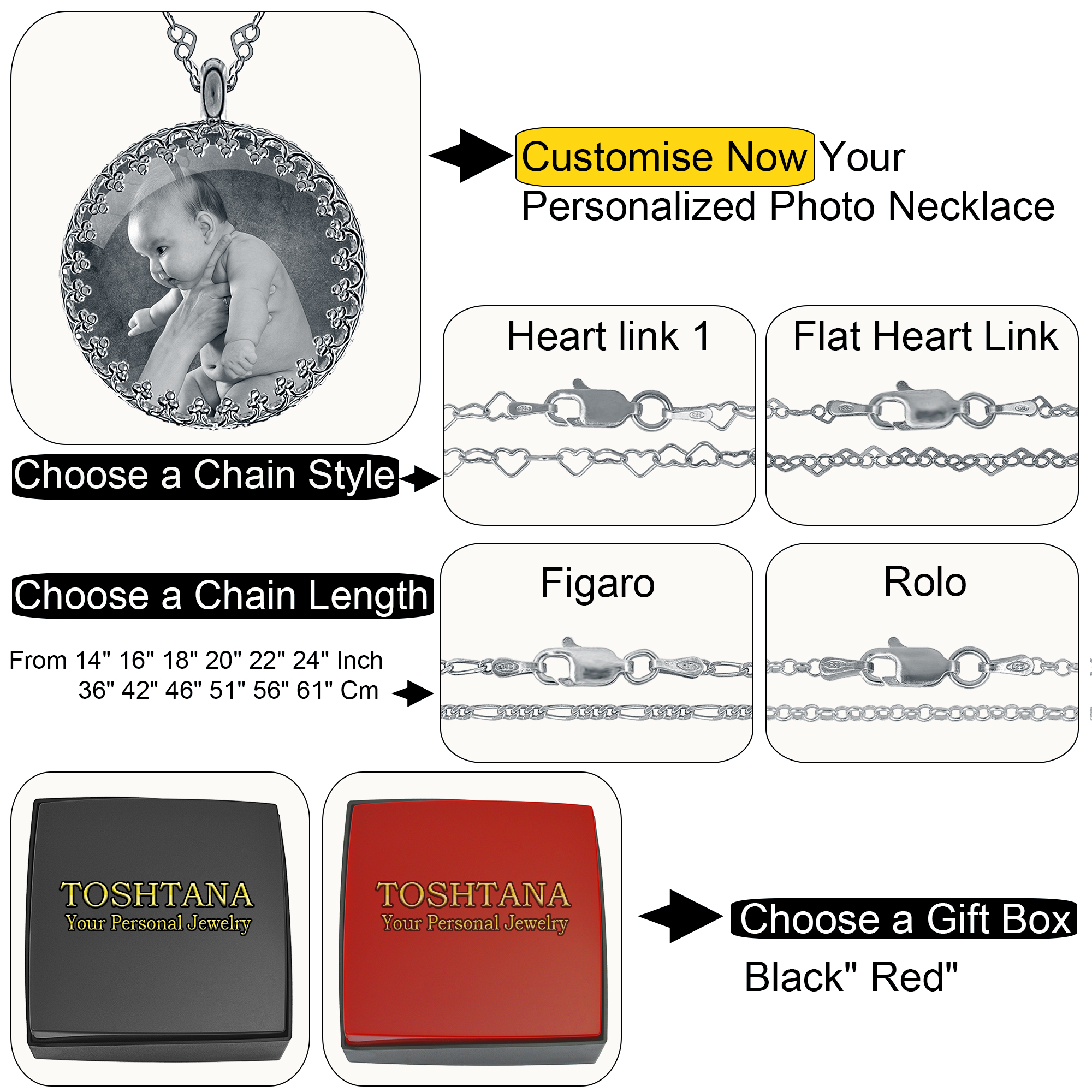 - 👉👉1. Click the ‘Customise Now’ button to begin. 2. Upload your cherished photo for the FRONT SIDE of the pendant. 3. Select your preferred chain style from our options. 4. Choose the perfect chain length that suits your style. 5. Pick your favourite gift box too.
