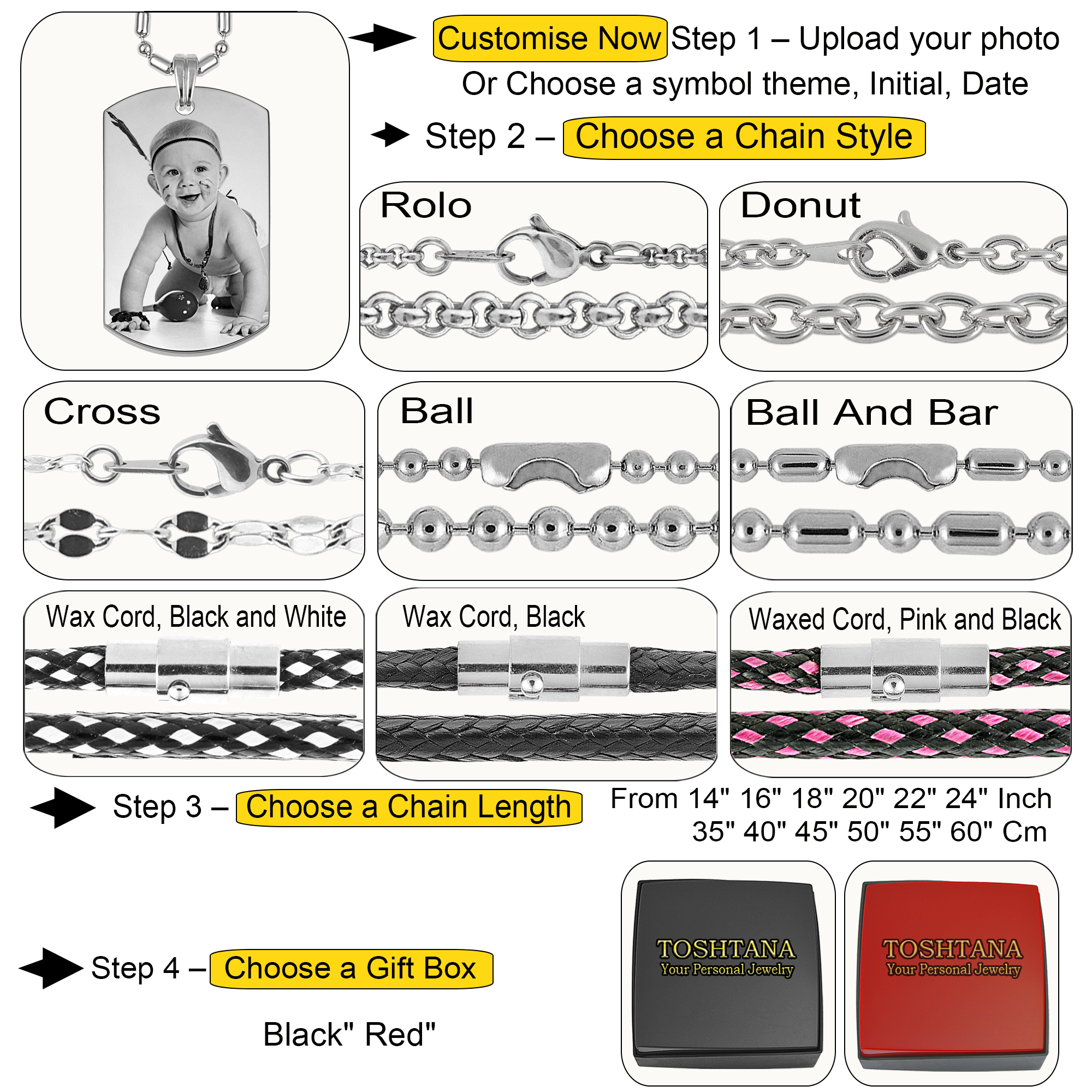 | Select Chain Length | 14in 35cm, 16in 40cm, 18in 45cm, 20in 50cm, 22in 55cm, 24in 60cm |