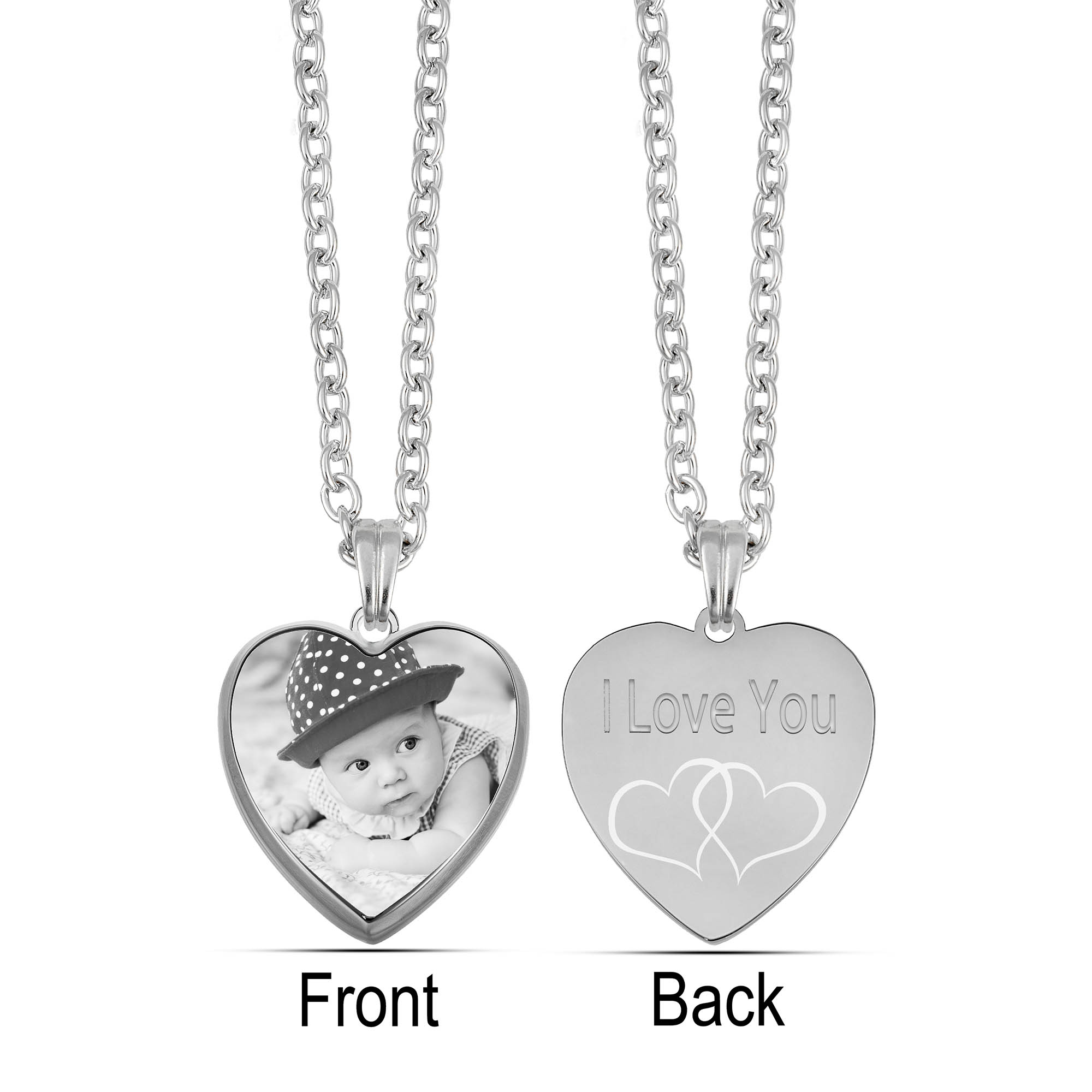 On the pendant engrave your photo or symbol on the front, and engrave (letters / numbers / lines / symbols) on the backside.