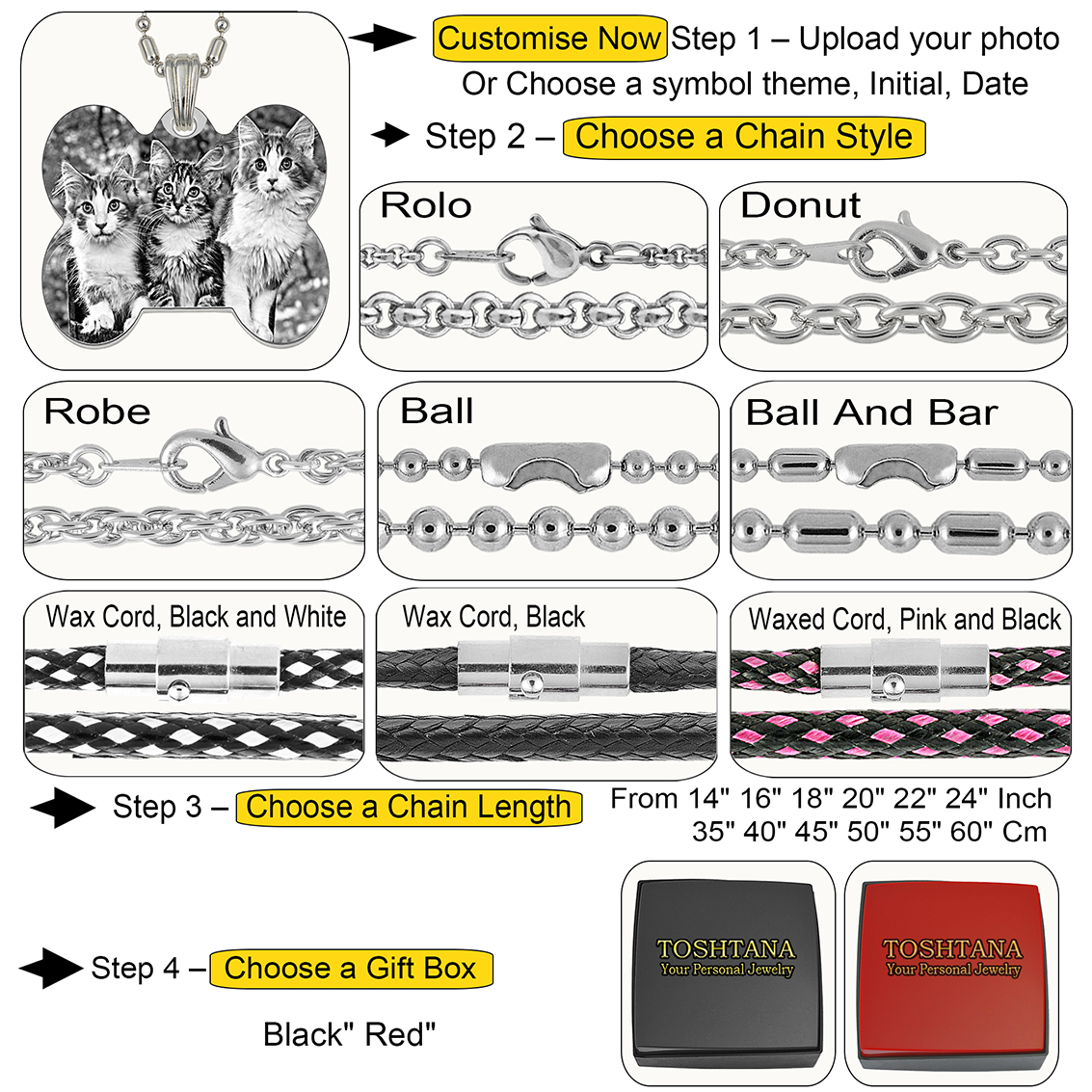 | Select Chain Length | 14in 35cm, 16in 40cm, 18in 45cm, 20in 50cm, 22in 55cm, 24in 60cm |