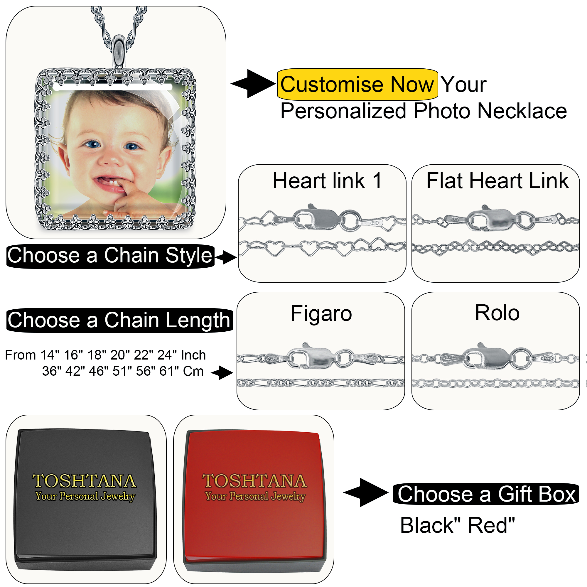 - 👉👉1. Click the ‘Customise Now’ button to begin. 2. Upload your cherished photo for the FRONT SIDE of the pendant. 3. Select your preferred chain style from our options. 4. Choose the perfect chain length that suits your style. 5. Pick your favourite gift box too.