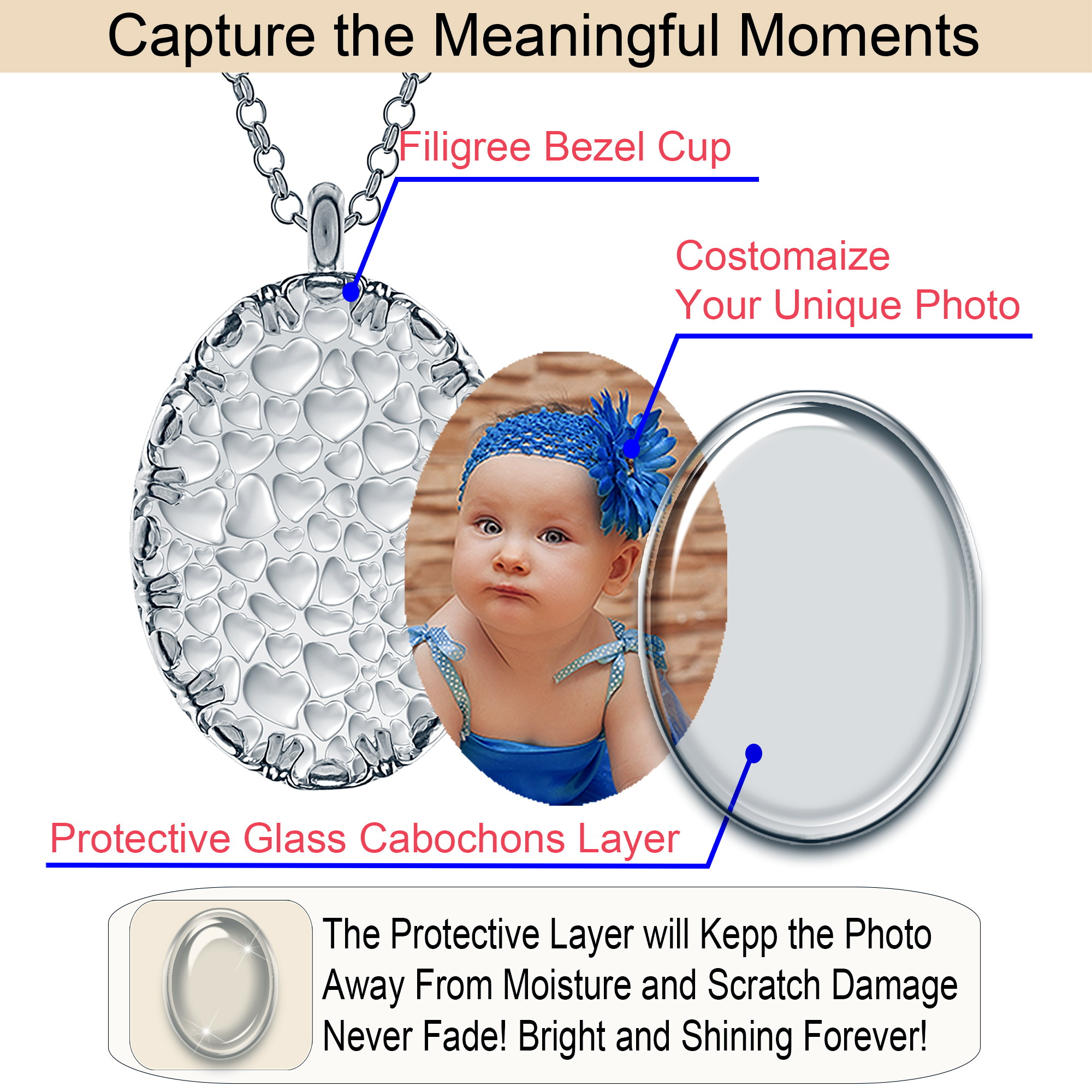 - ⛓️ Versatile Design: Personalised photo necklaces are not just an accessory but a statement piece. Wear it casually or formally; this personalised photo necklace seamlessly complements any outfit.