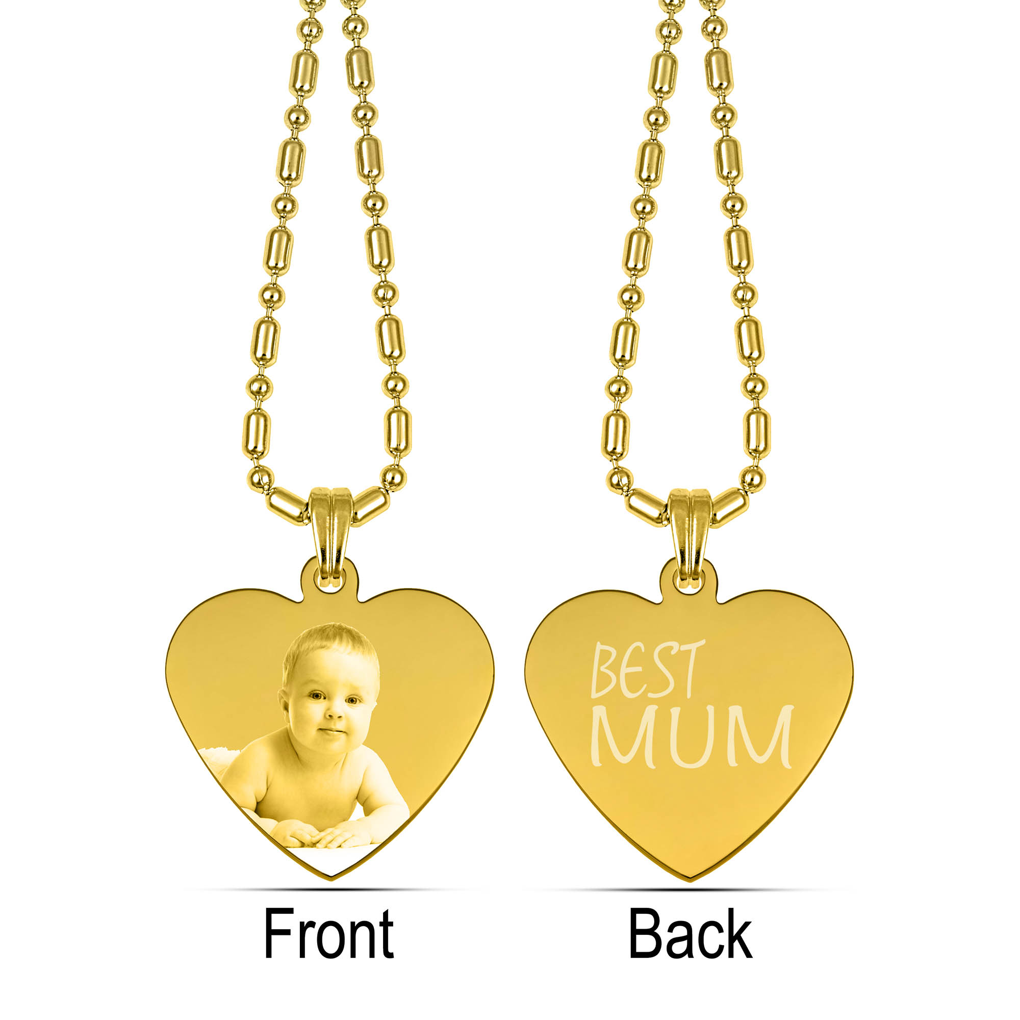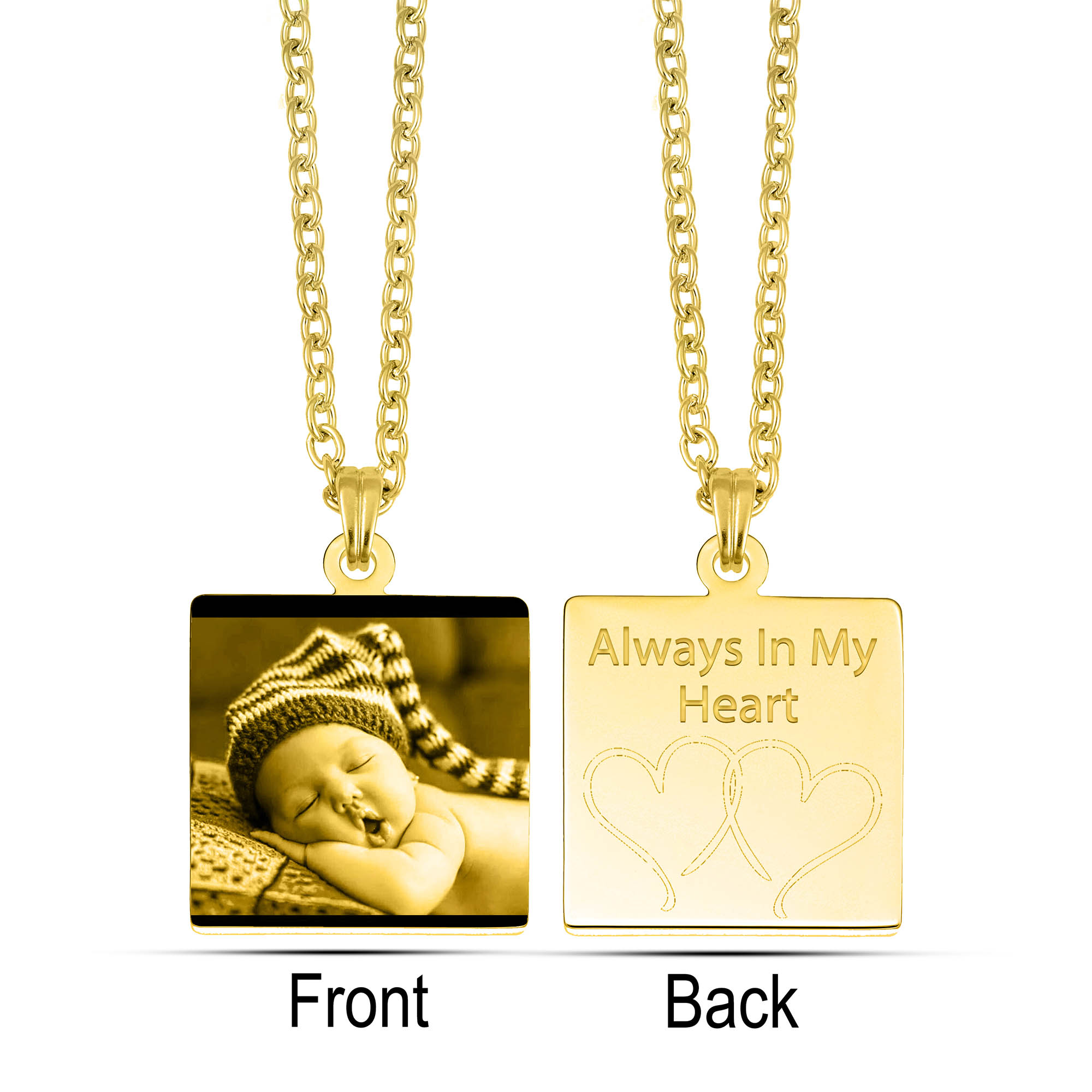 Gold Photo Engraved Heart Pendant