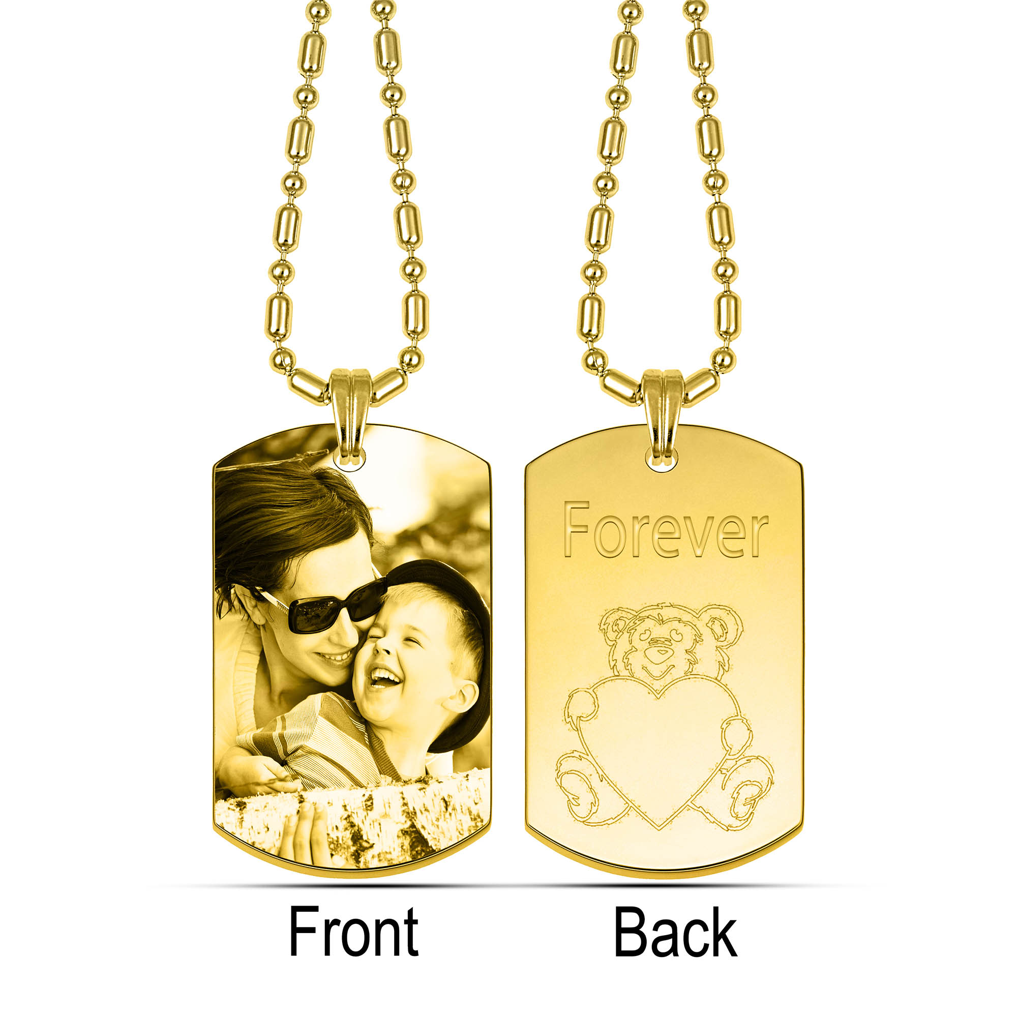 Gold Photo Engraved Dog Tag Pendant