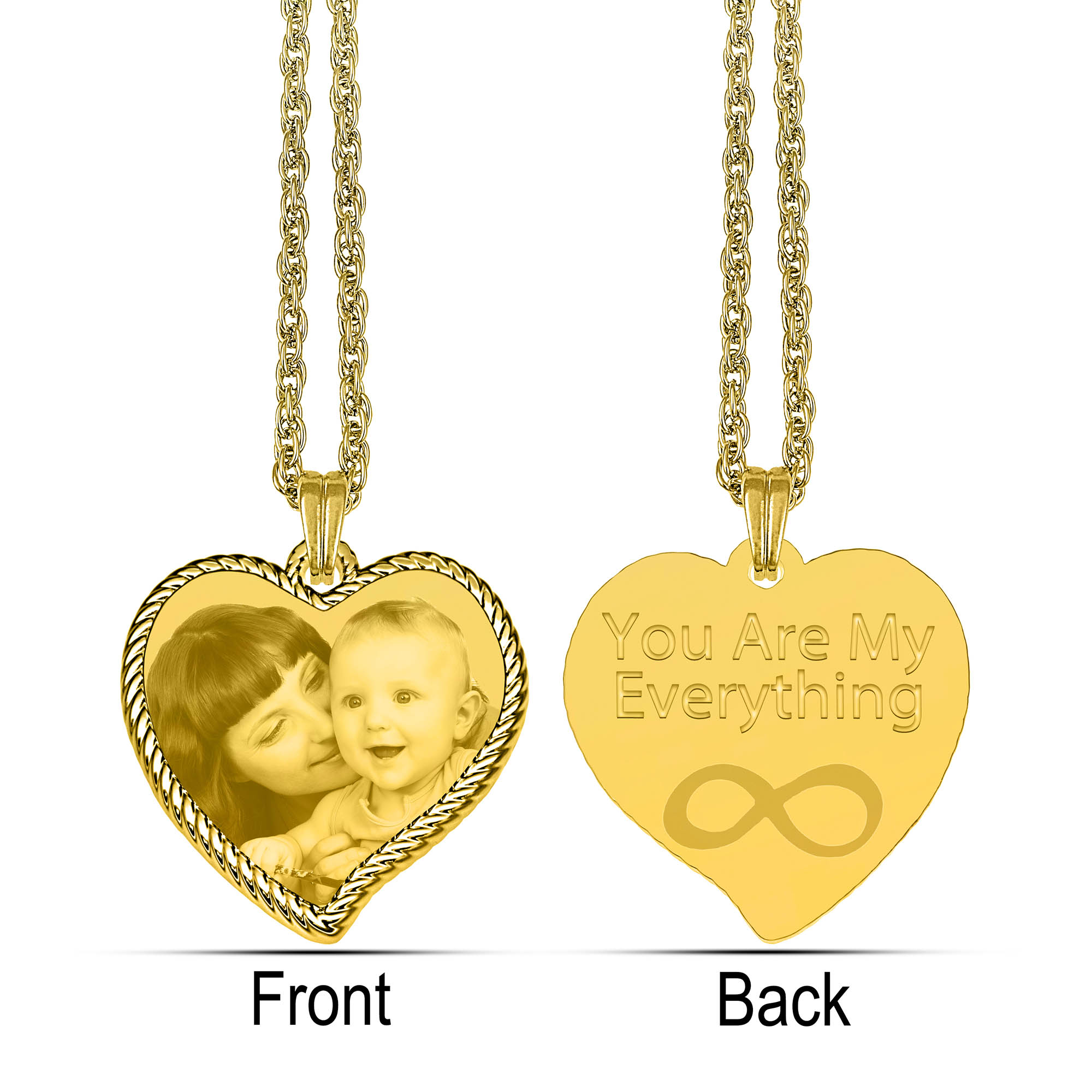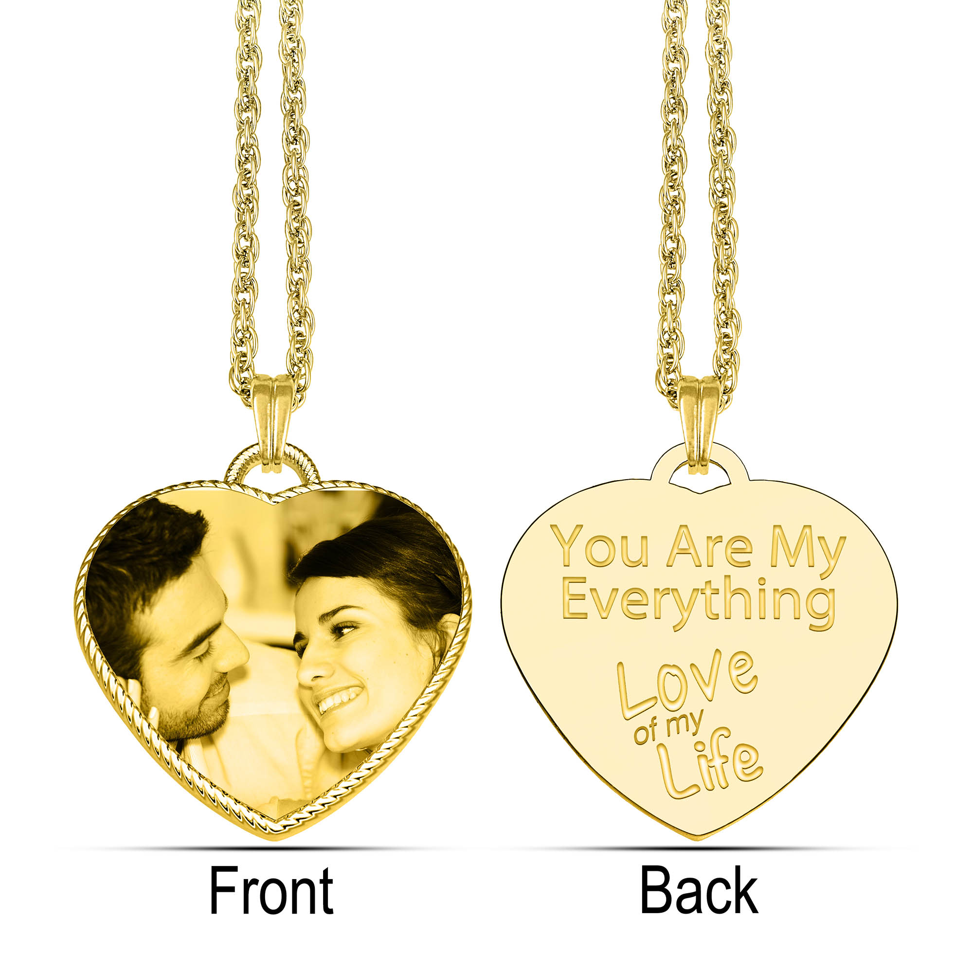 Gold Photo Engraved Rope Edged Heart Pendant Necklace