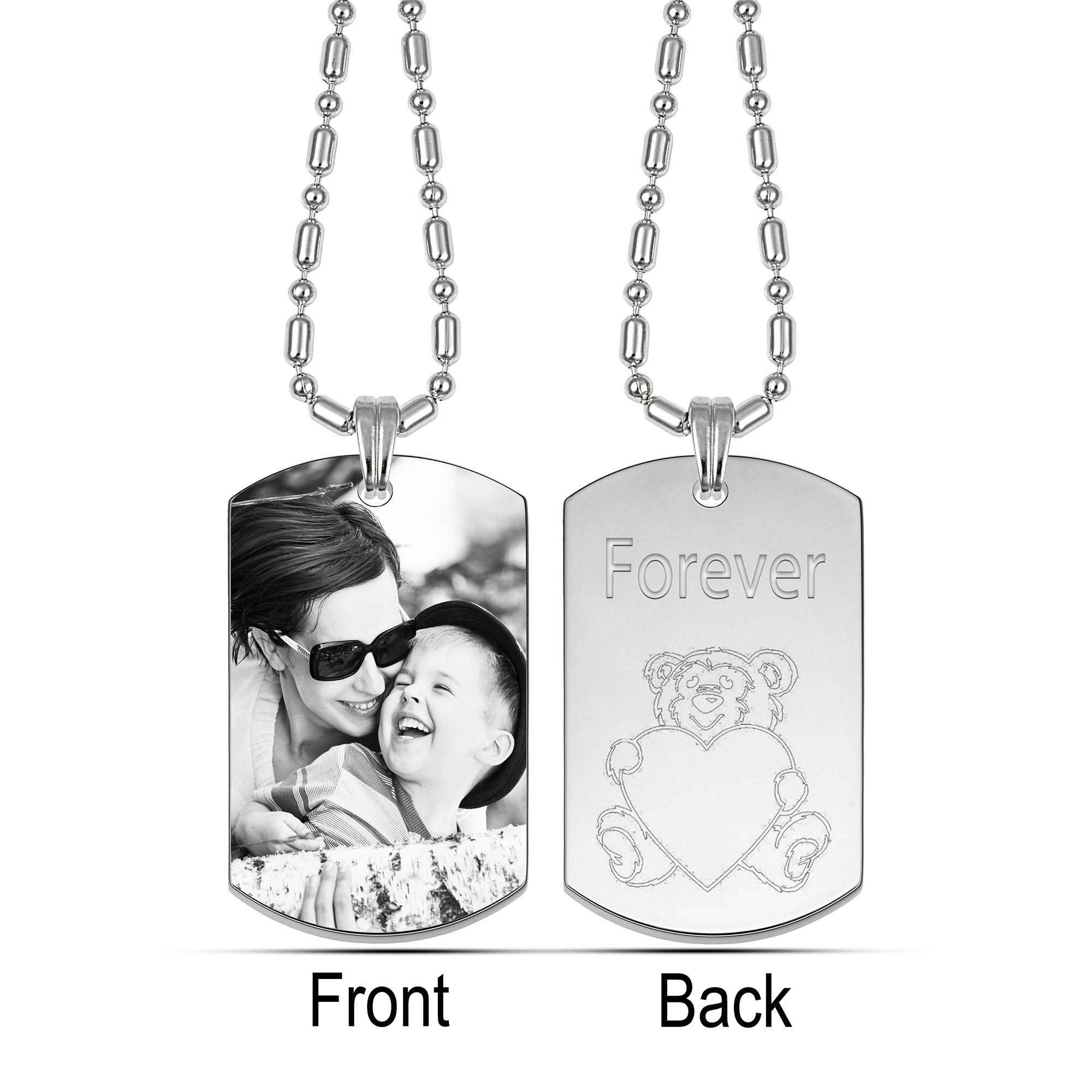 Silver Photo Engraved Dog Tag Pendant
