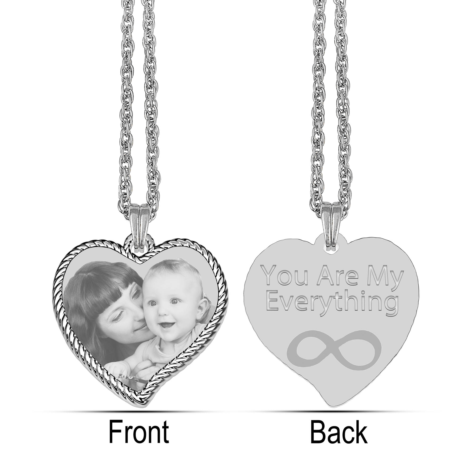 Silver Photo Engraved Rope Edged Heart Pendant Necklace