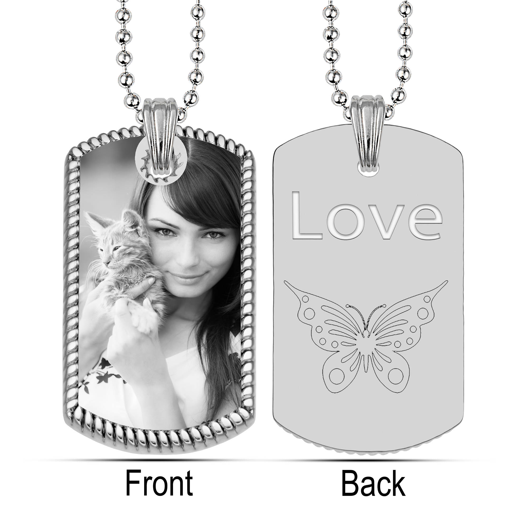 Captured Moments Silver Photo Rope Edged Dog Tag