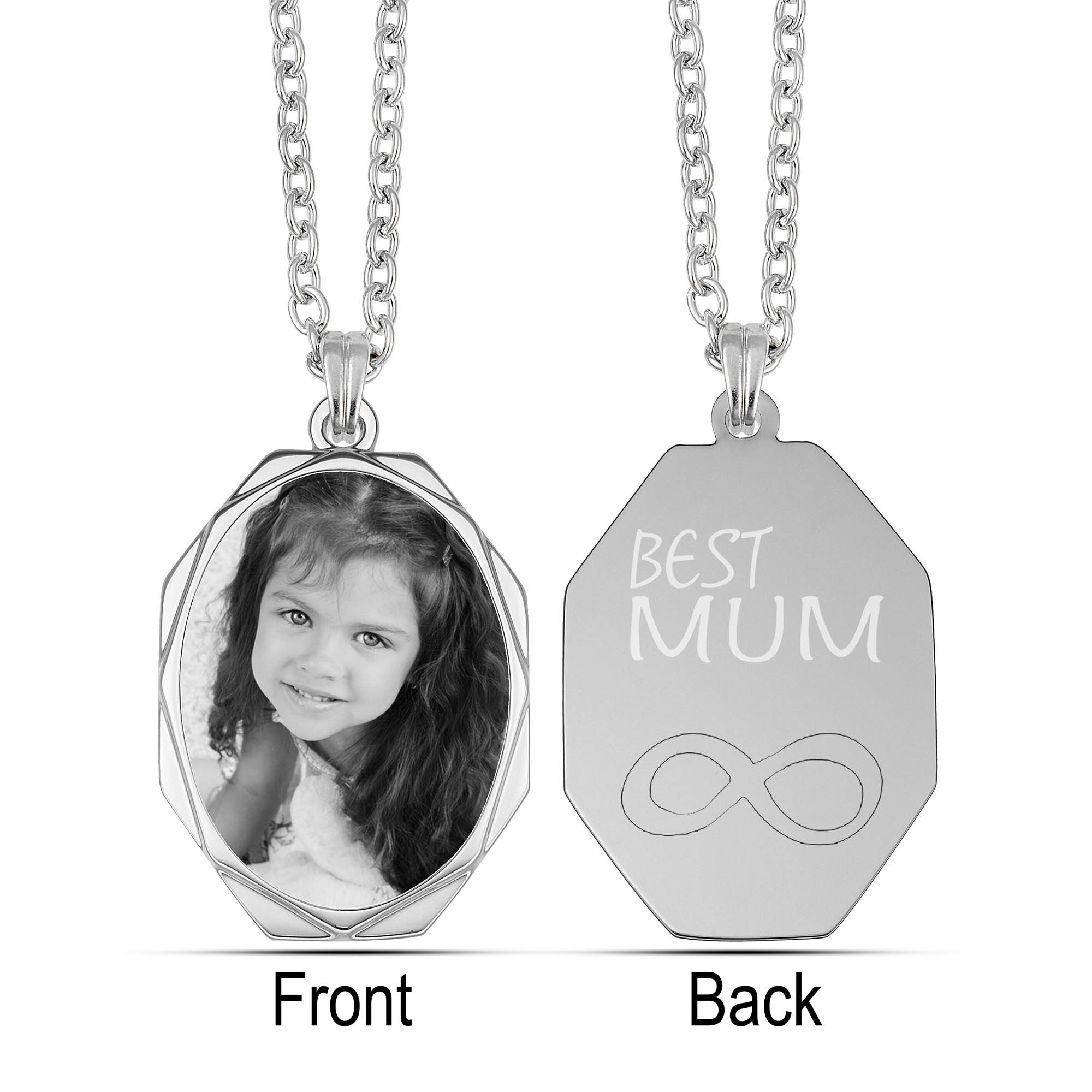 Choose your favourite photo, symbol or message to make it a special gift. On the pendant engrave your photo or symbol on the front,