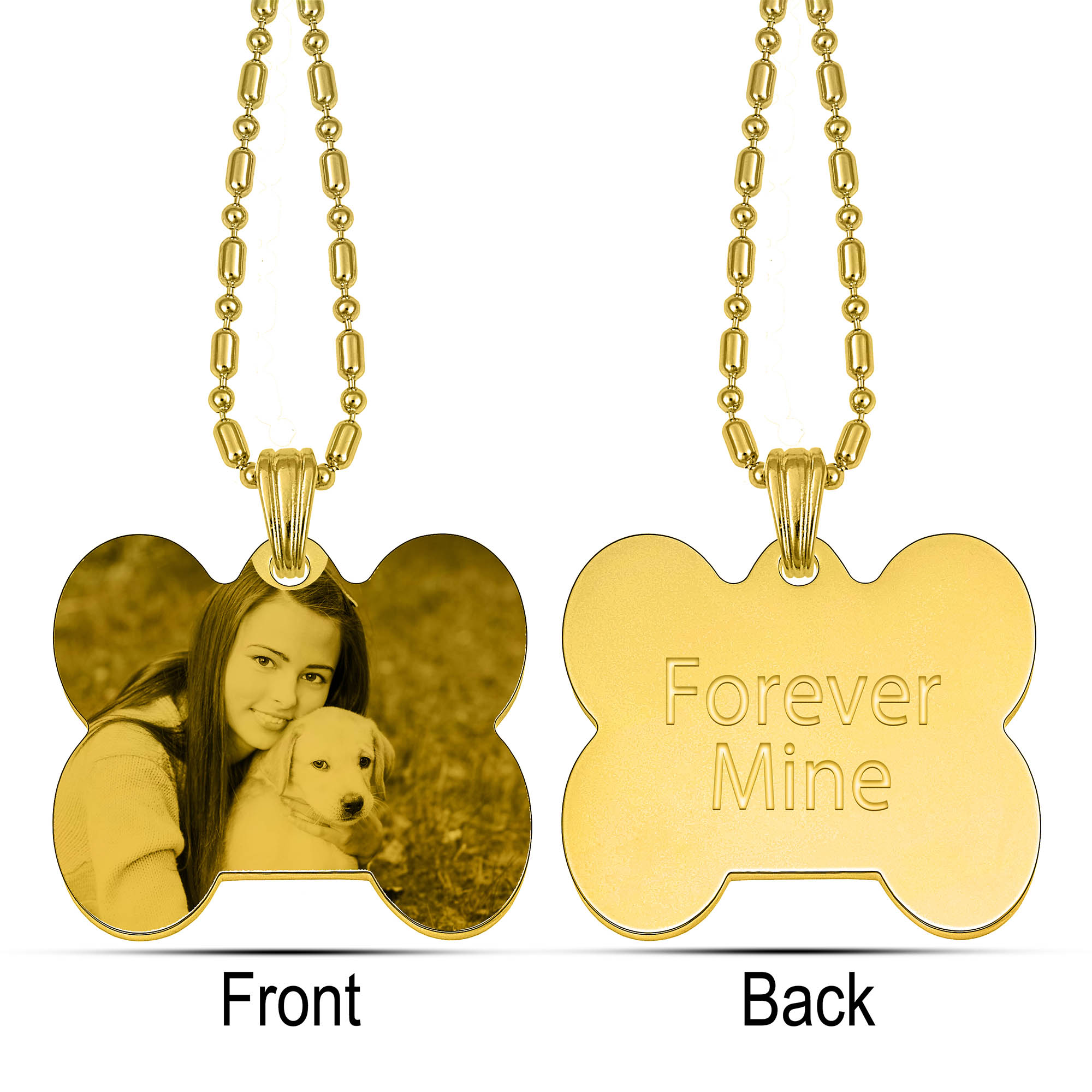 On the pendant engrave your photo or symbol on the front, and engrave (letters / numbers / lines / symbols) on the