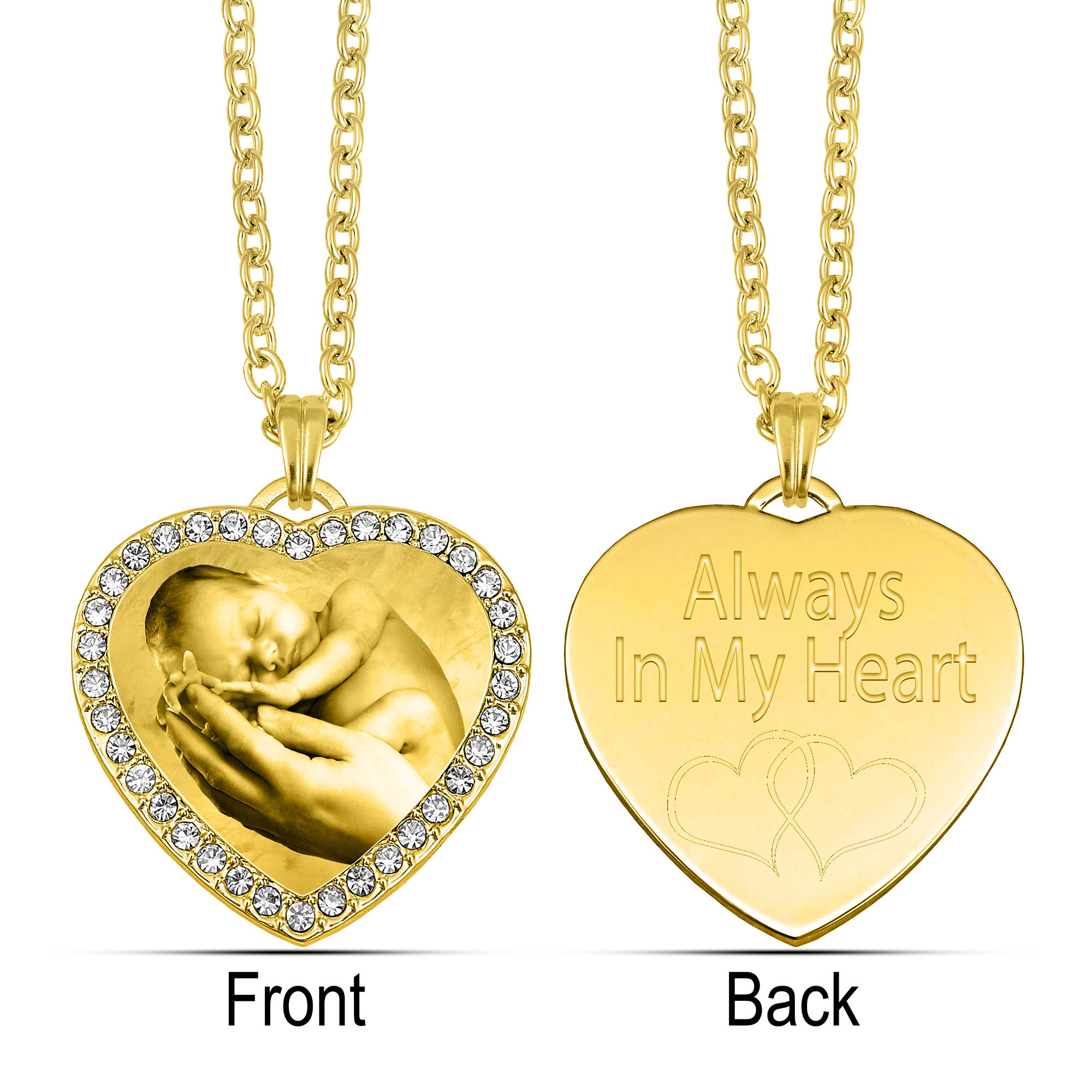 Gold Heart of Memories Engraved Pendant With White Zircon